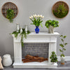 A symbol of spring, you can now enjoy the Tulip's warmth all year long with this Dutch Tulip Artificial Arrangement. A bunch of Tulip flowers not yet in bloom, are accented by green leaves to bring texture, drama and color to spaces in need of a spring awakening. Experience the fresh from the garden feel every season effortlessly without the need for maintenance. Standing 22" from a blue colored vase (included in height), gift as a present. Perfect for offices, mantels, kitchens, bedrooms or kitchen nooks.