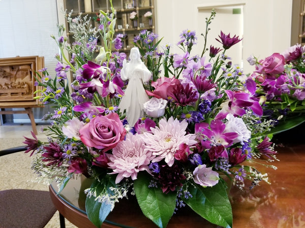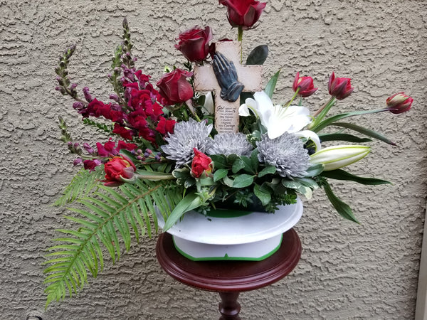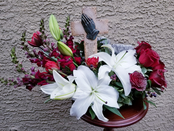 Express your deepest condolences with our Heartfelt Sympathies Designer’s Choice arrangement. Thoughtfully crafted with fresh, seasonal blooms, this elegant design offers a comforting expression of love, support, and remembrance. Each piece is uniquely created by our floral designer using the freshest flowers and natural elements available.